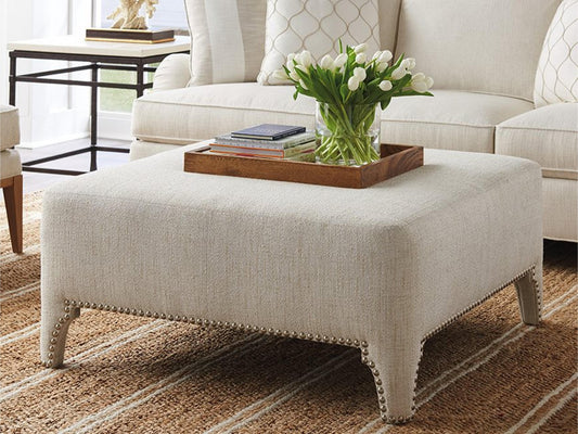 Barclay Butera Sheffield Square Upholstered Cocktail Ottoman Nailhead Trim